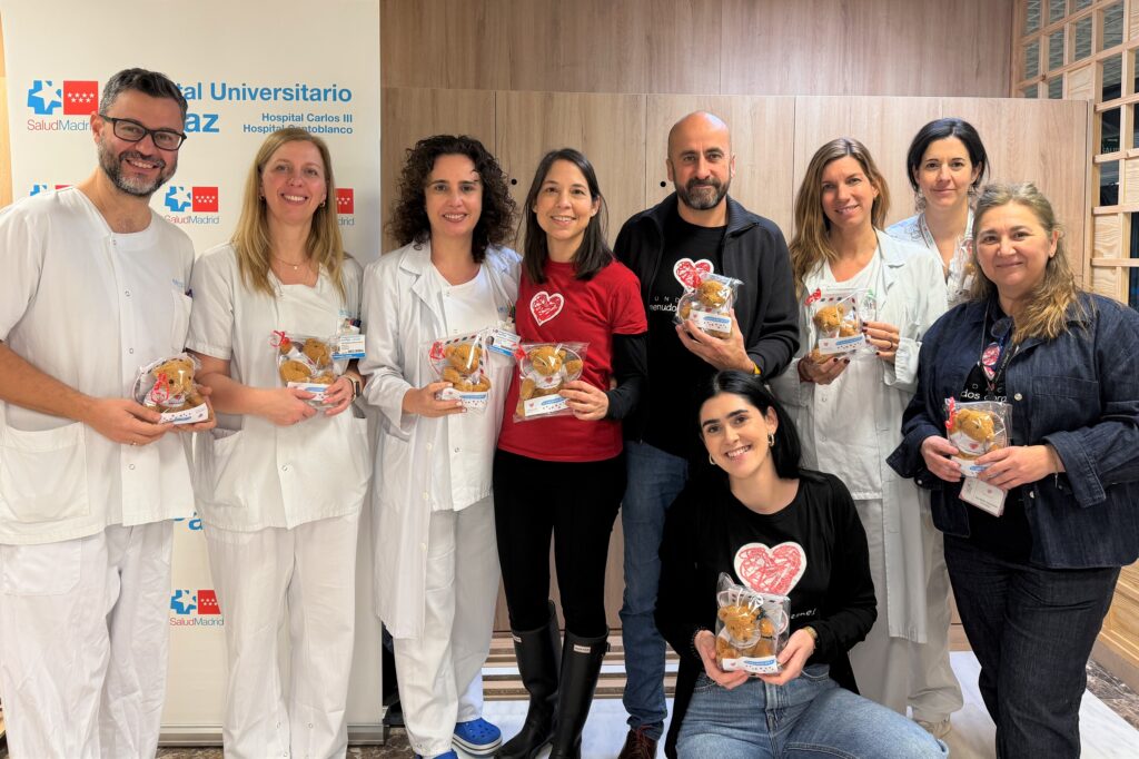 Un año más, recorrimos las unidades de neonatología, las UCI pediátricas y en las habitaciones de cardiología de La Paz, el Gregorio Marañón y el 12 de Octubre en Madrid entregando hasta 300 ositos de peluche a los más pequeños. Y, con nuestro calendario solidario, transmitimos nuestros mejores deseos para el 2026 a los adultos que, a causa de su cardiopatía congénita, permanecían hospitalizados en planta.