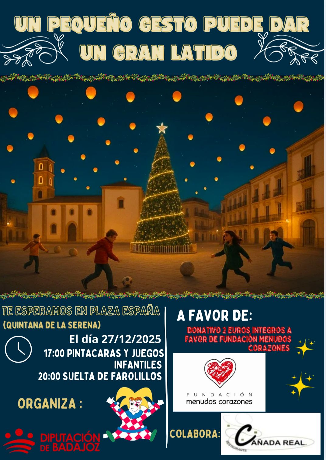 La Asociación Los Caprichosos organiza esta acción solidaria el próximo 27 de diciembre a partir de las 17:00 horas invitándonos a disfrutar de una tarde llena de diversión y sorpresas en Quintana de La Serena, Badajoz, donde toda la familia podrá atesorar momentos inolvidables.